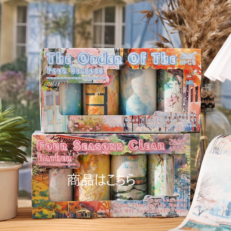 【13-b】四季シリーズ 風景 和紙ロールテープ ピンク 4本入り
