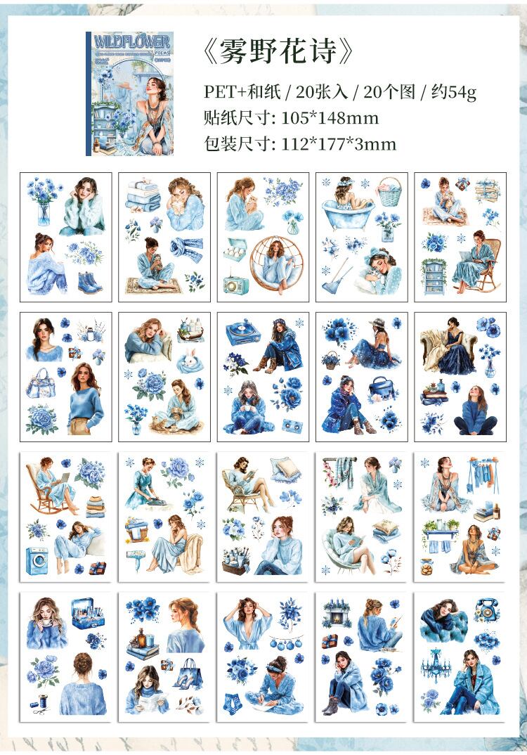【15-d】flower vineシリーズ ステッカーブック 青 20ページ