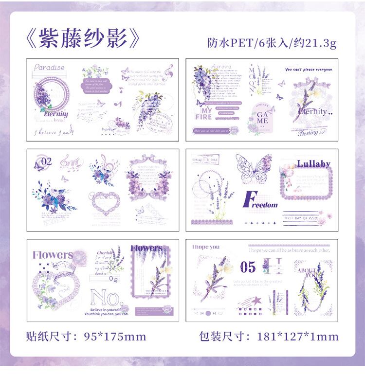 コラージュされているシールが1シートに6シール程度あり、使いやすいおしゃれなステッカーです。どのデザインも魅力的で、あなたのデコレーションやクラフト、ギフトにぴったりです!選ぶ楽しみが広がります♪