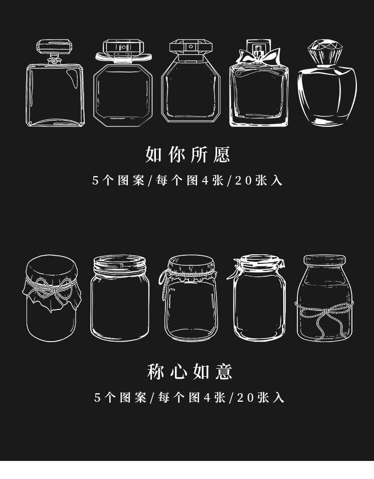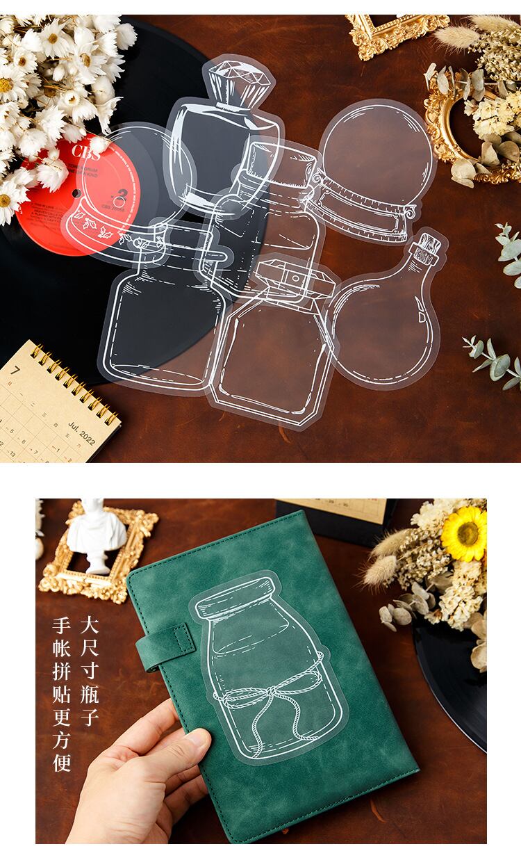 【25】コラージュ素材 透明ボトルステッカー 20枚×3種