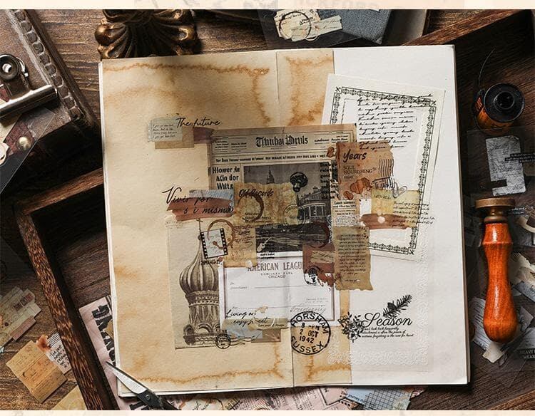 【31】コラージュ素材 レトロ風ステッカーブック 4種