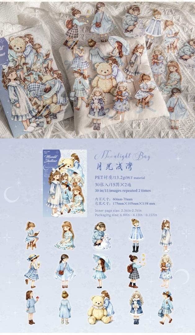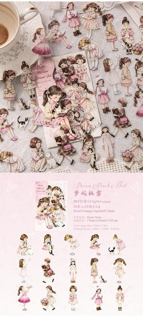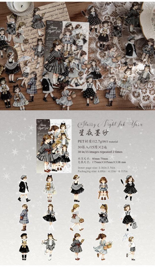 【34】コラージュ素材 かわいい女の子 PETシール 30枚×4種
