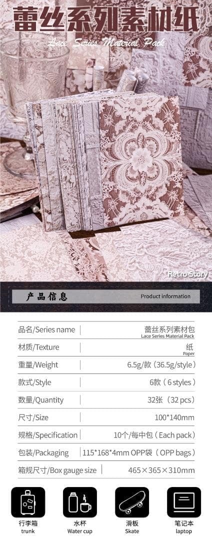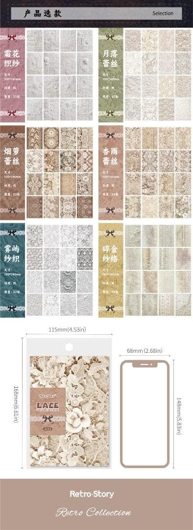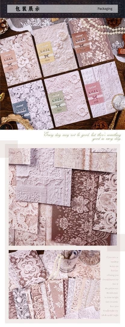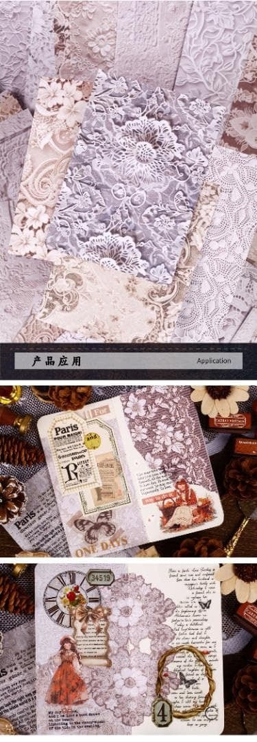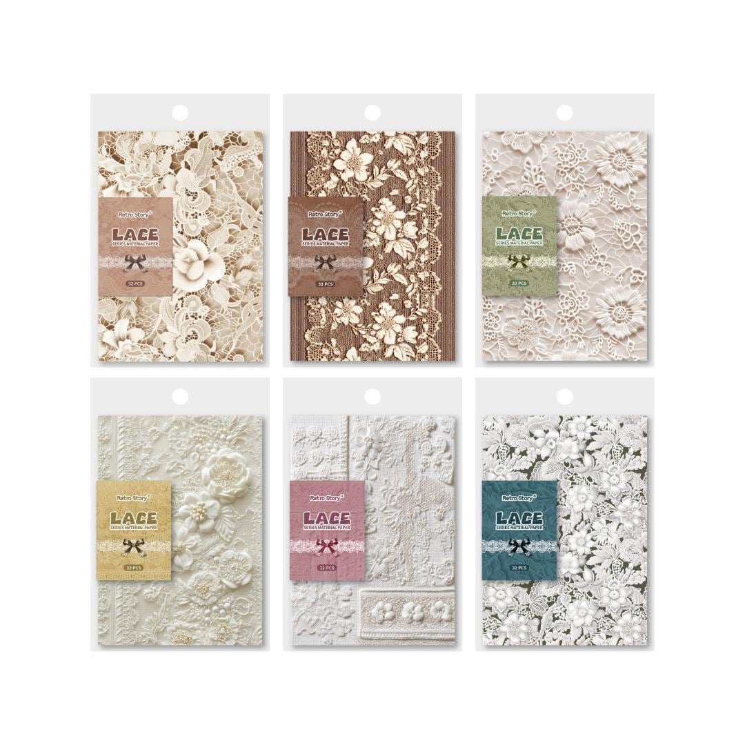 【A2】コラージュ素材 素材紙 レース レトロ 32枚×6種